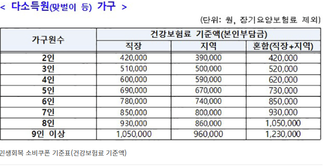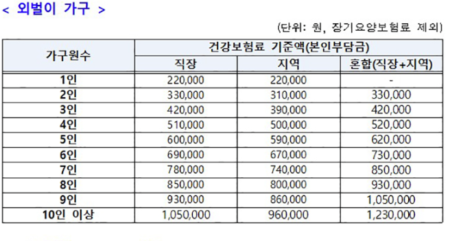 - 내 가구 건강보험료 기준 이하인지 확인