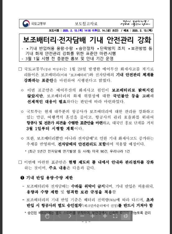 👉 앞으로는 보조배터리 + 방염백 세트가 여행 필수품이 될 가능성이 큽니다.