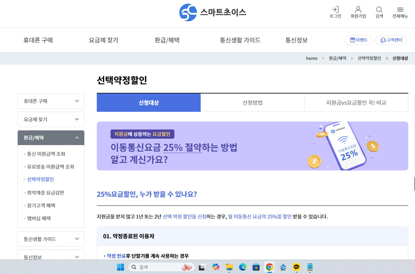 - 스마트초이스 접속 → ‘통신 미환급액 조회’